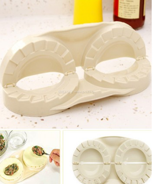 將餃子皮放在模具上,放入餡后將模具對折壓緊,一壓就能出兩個既好看又勻稱的餃子,而且節省時間更衛生方便!