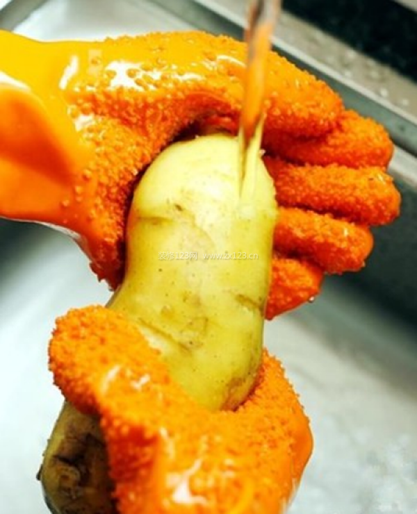 是否還在為土豆皮難以去除,用刀削又浪費而發愁!風靡日本的神奇剝皮手套,只需戴上它,清洗時使勁兒搓揉,就能把皮剝得一干二凈,這個方法既方便又保護了手!使用方法是很簡單的,絕對是廚房的必備用品哦!
