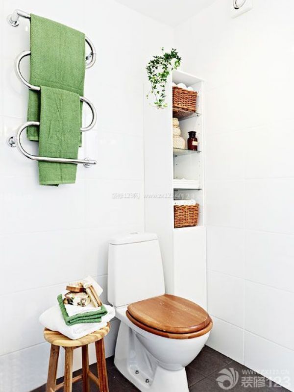 一、如果抽水馬桶的設(shè)計(jì)比較靠墻,那么其內(nèi)的三角區(qū)域也可好好利用起來,無(wú)論是放上一個(gè)小型的收納架緊貼墻面還是直接在墻上放上幾個(gè)符合墻形的架子都是不錯(cuò)的主意。