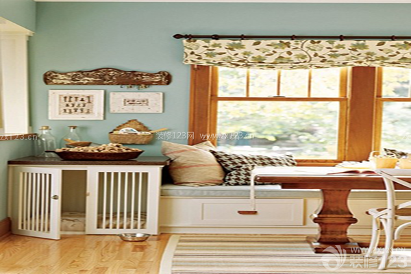 2、飄窗法:對于許多熱衷于改裝成一個小型榻榻米的“飄窗”,它的下部空間其實也可以挖空作為你家阿貓阿狗的小窩。鋪上軟軟的墊子,裝個小欄桿,跟家里的小家伙成為“上下鋪兄弟”,感覺應該也不錯。
