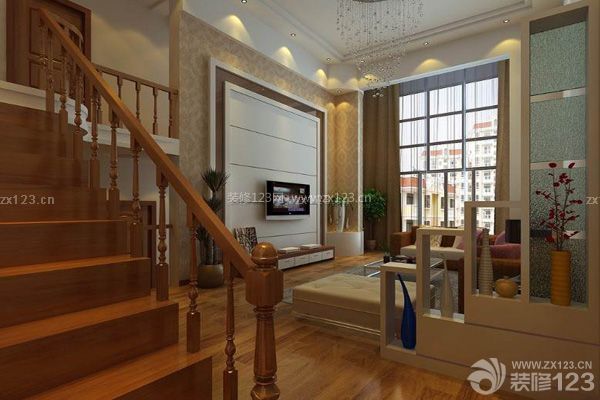 復式樓的樓層空間由于有了足夠的層高落差,在做吊頂時對燈具的款式的選擇面更大一些,所以可以在客廳燈具的選擇上,用更高檔的燈具來裝飾點綴,以備家庭聚會或有重大活動之用,以體現主人的生活和思想的品位。而在其他地方可以使用吊燈、筒燈、射燈、壁燈等,靈活搭配使用,會顯得很有韻味和變化、靈動活潑。在樓梯附近,要有照明燈光的引導,也是室內效果的點綴。
