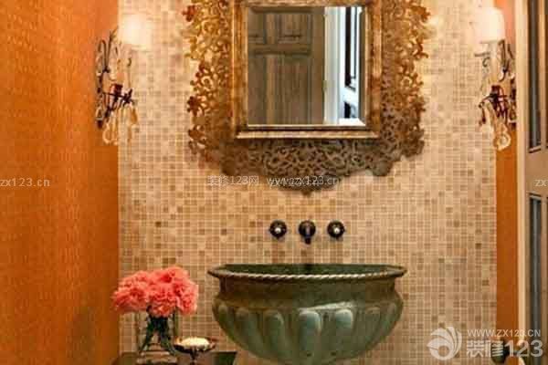 裝修tips這個衛生間的復古色彩就更加濃郁了:淺色馬賽克墻面與明朗的橘色墻面組合,加以繁復鏤空花紋邊框的鏡面,在兩旁加以對稱的暖色小壁燈,讓這一空間顯出一種華貴范。青銅色的臺盆可謂是整個房間最吸睛的裝飾,復古韻味十足。