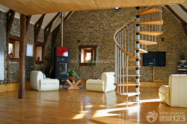 樓中樓樓梯材質(zhì)二:實木樓梯