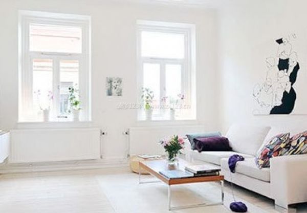 白色的客廳,依舊是如此的純美。白色的布藝沙發搭配藍色和紫色的靠枕,感覺非常和諧。兩個藝術圖紋的靠墊和墻上的黑白藝術裝飾畫,形成了一種默契,無論是從顏色上還是散發出來的藝術氣息,都給空間帶來了活躍的氣氛。然而,簡約的電視柜,讓客廳顯得更寬敞,這是一款最典型的簡約中式風格,針對這一類型的風格,朋友們還可以參考一下簡約中式裝修效果圖,或許還能產生更多不一樣的思想。