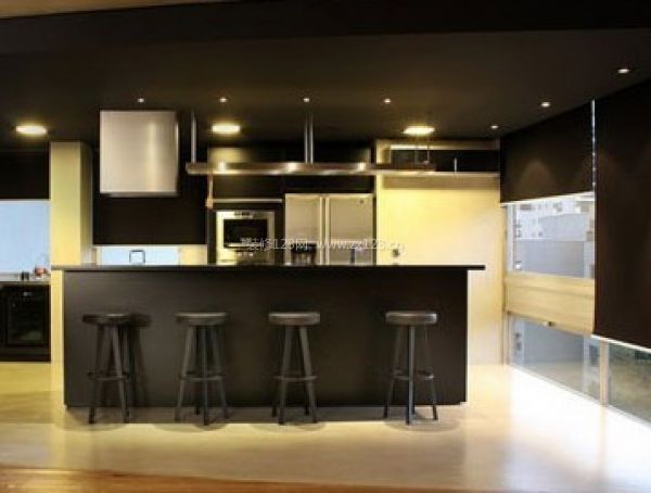廚房采用黑色的整體基調,大膽而利落,彰顯出十足的年輕氣息。柔和的黃色燈光則打破了空間色彩的單調,很好地點綴了空間,為廚房增添了藝術美感。