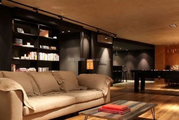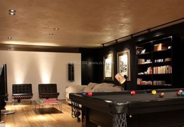 客廳的一旁放置了臺球桌,成就了一個茶余飯后的娛樂空間。黑色的格調與對面的白色背景墻形成鮮明的反差,給這個溫馨的大空間帶來一些視覺沖擊力,也讓家更顯時尚感。