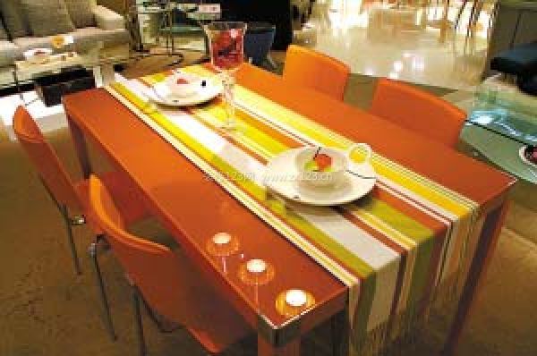 鮮艷的色彩也是今年餐桌的流行元素。貼近大自然的蘋果綠,熱情奔放的橘紅,飽滿的色彩成為空間的一大亮點,顯得活潑而不單薄。而且因為玻璃材質的晶瑩感覺,即使用紅色這些暖色調也不致讓人感覺煩躁。