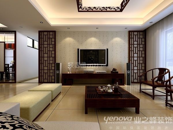 新中式風(fēng)格特色:中國(guó)風(fēng)的構(gòu)成主要體現(xiàn)在傳統(tǒng)家具(多為明清家具為主)、裝飾品及黑、紅為主的裝飾色彩上;室內(nèi)多采用對(duì)稱式的布局方式,格調(diào)高雅,造型簡(jiǎn)樸優(yōu)美,色彩濃重而成熟。