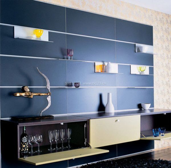 客廳的擱架設(shè)計(jì)最好是開(kāi)放式,可以放置一些具有觀賞效果的小件物品,對(duì)整個(gè)客廳的裝飾起到提點(diǎn)作用。