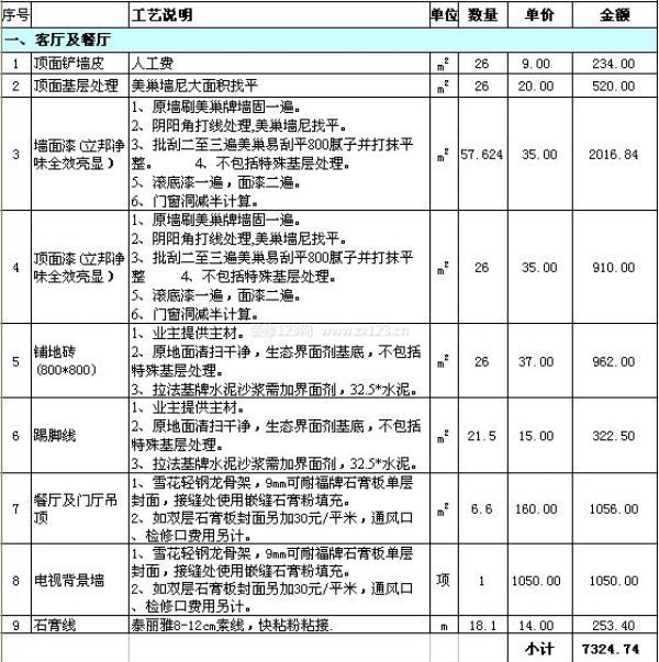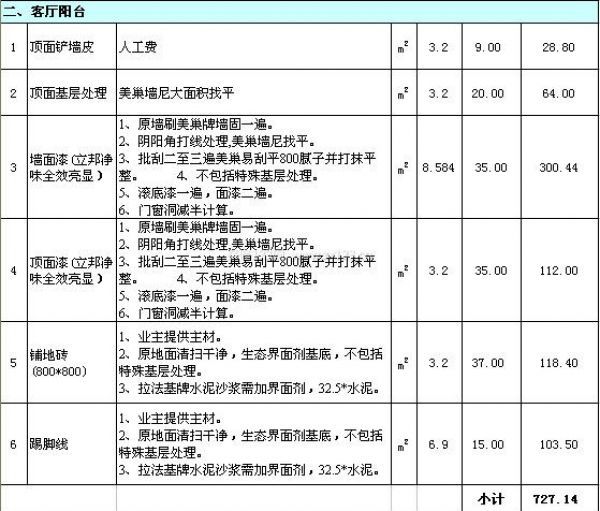 80平米裝修費用(兩室一廳)工程報價單(一)