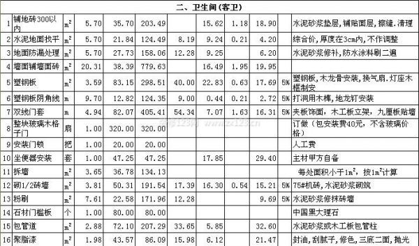 家庭裝修預算清單(二)