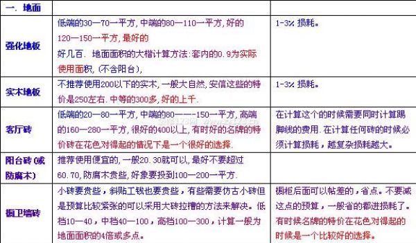 裝修預算清單計算方式(一)