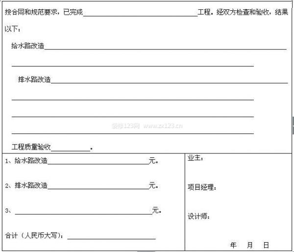 對(duì)于這樣的情況,今天小編特地找了一家裝修公司,拿到了一份水電改造工程驗(yàn)收單供各位業(yè)主朋友觀閱。
