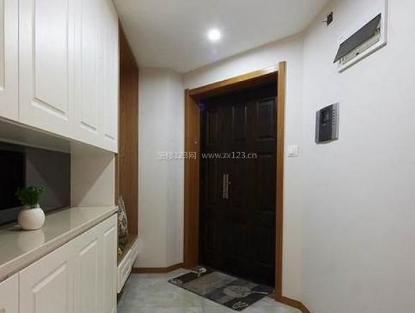 這是入戶門,這個空間有點不規則形狀,但是這個空間靠墻做的鞋柜還是蠻舒服的。