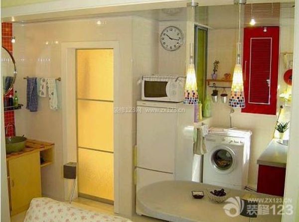 (1)用玻化磚、烤漆玻璃增強(qiáng)反光效果。廚房、衛(wèi)生間的墻面用玻化磚比亞光磚反射效果更好,視覺上使空間變大。設(shè)計(jì)師利用這個(gè)原理用黑色烤漆玻璃做電視背景墻。局部黑色及烤漆的反光都會(huì)使空間變大。