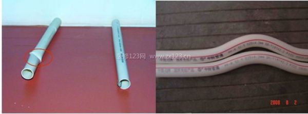 質量好的PPR管韌性好,可輕松彎成一圈而不斷裂,而劣質管較脆,一彎即斷。
