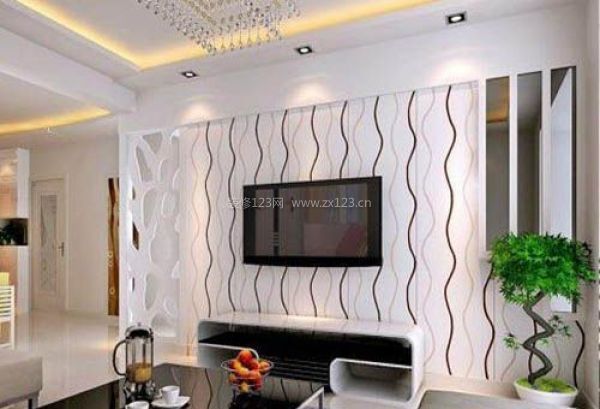 電視背景墻的裝飾,在現(xiàn)代的家居裝修風格中追求的是一種簡單與低調,不需要過多的裝飾去點綴,一張精美的壁紙足夠讓整個背景墻變得簡潔,漂亮。豎條紋的波浪線精美壁紙,拉伸了整個視覺空間,而以白色為底色的壁紙,是客廳的空間感明亮了不少。