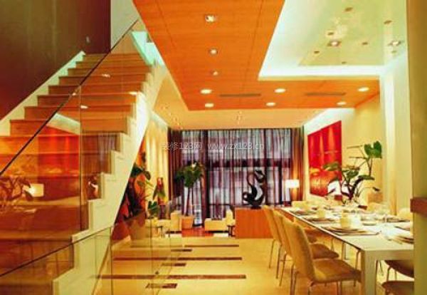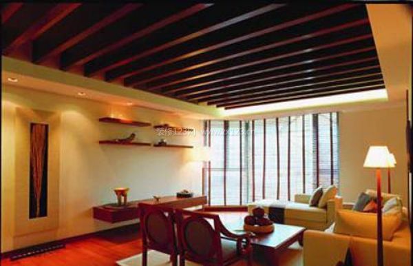 這款吊頂也屬于異性形吊頂,雖然它表面看是大平面為主,但仔細(xì)看,這個(gè)平面是由一組木制橫梁組成的。這種吊頂富有樸素大方并具有異域風(fēng)情的特色,是小資一族所經(jīng)常青睞的。該類吊頂一般用于客廳或餐廳等空間。