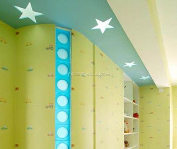“天上的星星亮晶晶”看這款充滿兒童樂(lè)趣的吊頂。這樣的吊頂是否讓你想起自己的童年歲月呢?富有天空聯(lián)想的吊頂與卡通情趣的壁紙一起,給空間帶來(lái)了童話般的夢(mèng)幻格調(diào)。