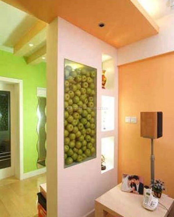 由蘋果堆砌而成的一個玄關裝飾門,滿滿的蘋果,帶著酸甜的香味構成了房屋的清新的格調(diào),這樣的玄關裝飾看起來很有特色。