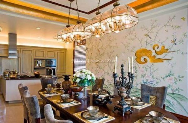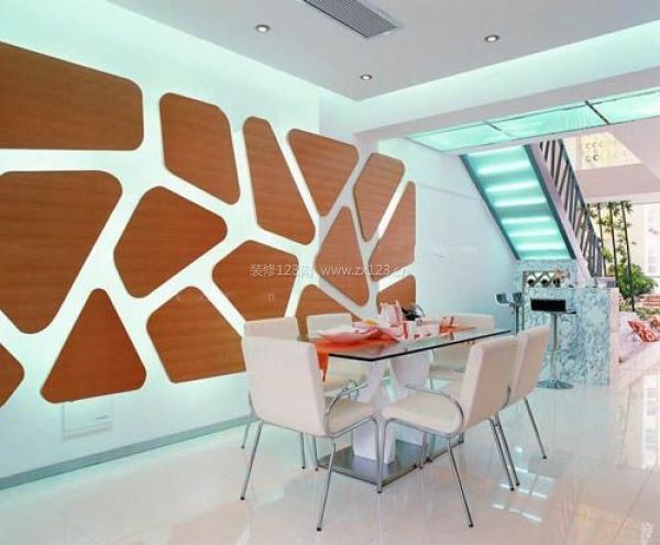 如果你是一個(gè)追求時(shí)尚的婦女和女孩,餐廳背景墻可以選擇粉紅色作為中心色,燈罩粉紅色,座墊和窗簾可用粉紅印花布,地板配上淡茶色,墻壁乳白色,這樣會(huì)給人一種靚麗青春之感。