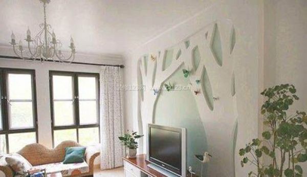 地中海風格最大的特點就是白灰泥墻,這款地中海風格電視背景墻設計采用最簡單大氣的白色墻,但是,簡單的同時,卻也融入了最具創意的設計。鏤空的墻面設計成了兩棵大樹的圖案,翩翩的蝴蝶仿佛要振翅飛翔。