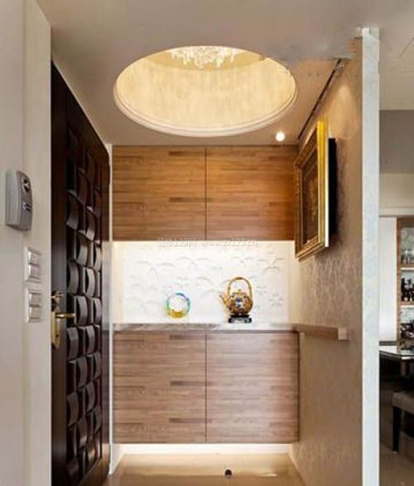 小戶型不適合做復(fù)雜的吊頂設(shè)計(jì),如果您家不做絲毫的吊頂設(shè)計(jì),可以在玄關(guān)處設(shè)計(jì)一盞特色的燈具,抬頭另有一處驚訝。