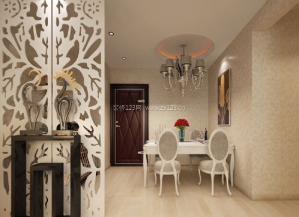 餐廳亮點:餐廳采用玄關做隔斷,使餐廳和客廳緩沖空間,視線不要對室內一覽無余,保證室內生活的隱秘性,使室內之氣不致外泄,整體舒適優雅的就餐環境。
