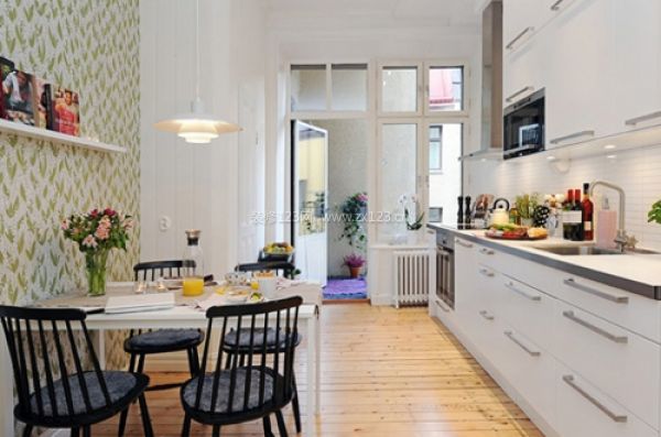 時(shí)尚的廚房的廈門使得它感覺(jué)特別寬敞。鑲板門和異型廚房碗柜形成鮮明對(duì)比的白色時(shí)尚的廚房。上方和下方用白色光滑門柜提供大量的存儲(chǔ)。另一邊墻壁用很好的壁紙,是4-6人舒適的用餐區(qū),顯得不會(huì)太過(guò)于蒼白。最贊的是廚房也有一個(gè)陽(yáng)臺(tái),每天都能享受著大量的自然光線。