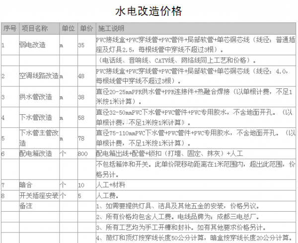 2013年水電改造價格 最新最全的裝修報價單
