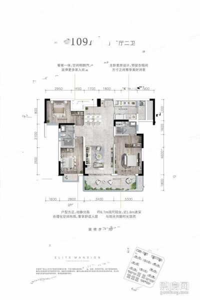 龍光天瀛A戶型(3室2廳,109平,南北)