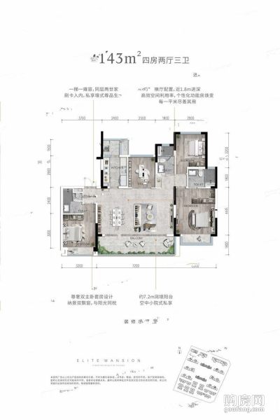 龍光天瀛E戶型(4室2廳,143平,南北)