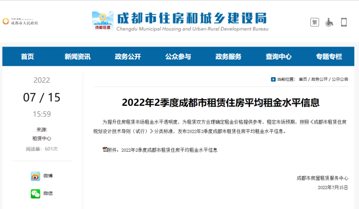 近日,成都住建局按照《成都市租賃住房規劃設計技術導則(試行)》分類標準,發布2022年2季度成都市租賃住房平均租金水平信息。