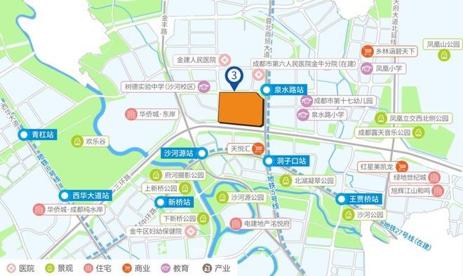宗地位置:位于沙河源街道,東臨蓉北商貿大道三段,西臨川建南二路,南臨北三環路二段,北臨匯豐路。