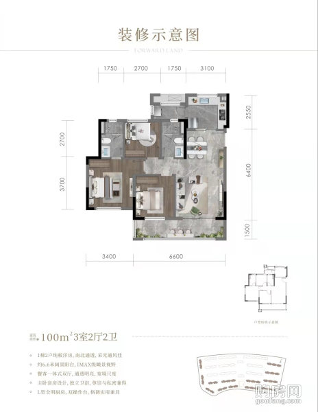 中旅啟境A戶型(3室2廳,100平,南北)