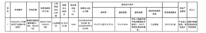 最新消息!成都郫都區PGZ2022-07新經濟產業園M1號土地出讓