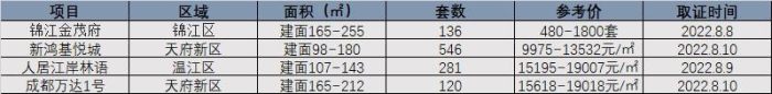 成都樓市好事不斷,八月過半再迎樓盤取證,據目前統計情況來看,目前有8個項目取證,共計2022套房源。