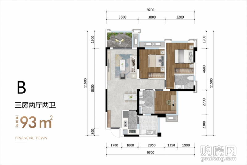 振興環天金融城B戶型(3室2廳,93平,南北)