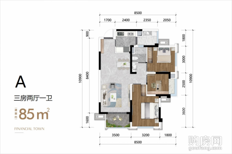 振興環天金融城A戶型(3室2廳,85平,南北)