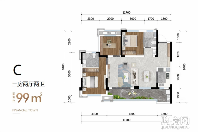 振興環天金融城C戶型(3室2廳,99平,南北)