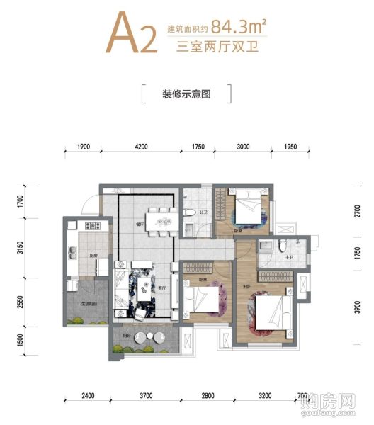 濱江睿城三期A2戶型(3室2廳,84.3平,南北)