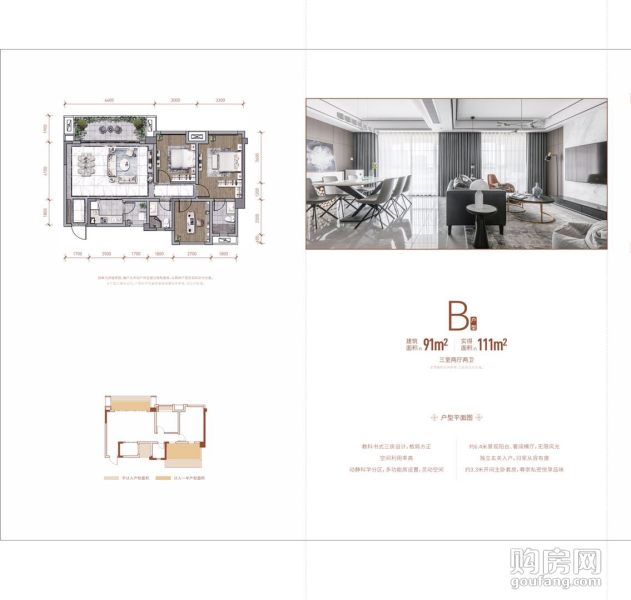 中糧天府智慧城B戶型(3室2廳,91平,南北)