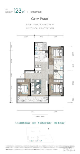 F-123㎡,套三雙衛(3室1廳,123平,南北)