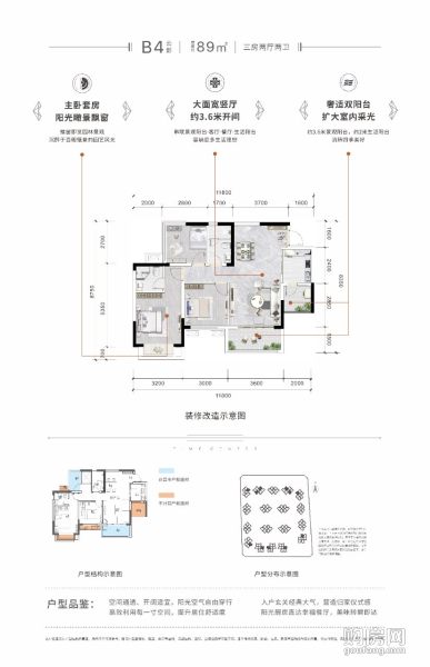 環(huán)天時代中心二期B4戶型(3室2廳,89平,南北)