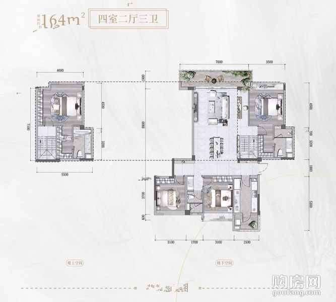 中建錦瀾壹號-瀾逸建面約164㎡戶型(4室2廳,164平,南北)