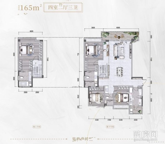 中建錦瀾壹號-瀾和建面約165㎡戶型(4室2廳,165平,南北)