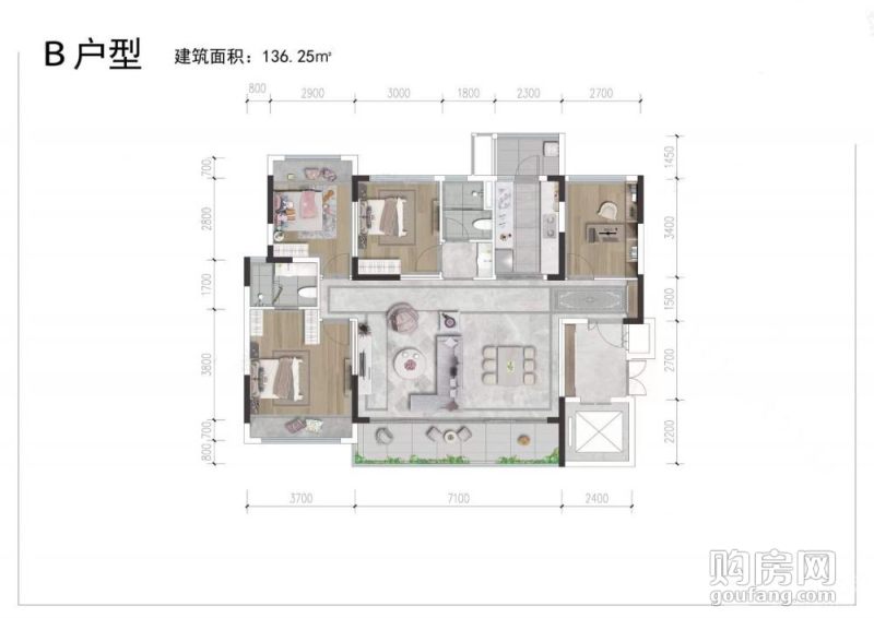城投藝墅語湖B戶型(4室2廳,136.25平,南北)