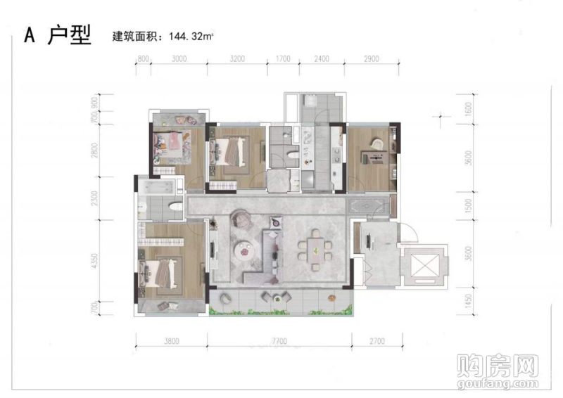 城投藝墅語湖A戶型(4室2廳,144.32平,南北)