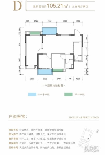 成都萬(wàn)朵城D戶(hù)型(3室2廳,105.21平,南北)