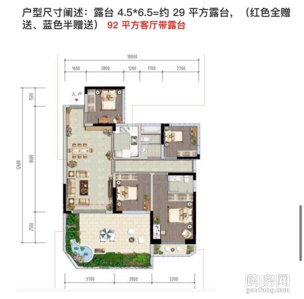 聚億天府錦城三期建面約92㎡客廳帶露臺(4室2廳,92平,南北)